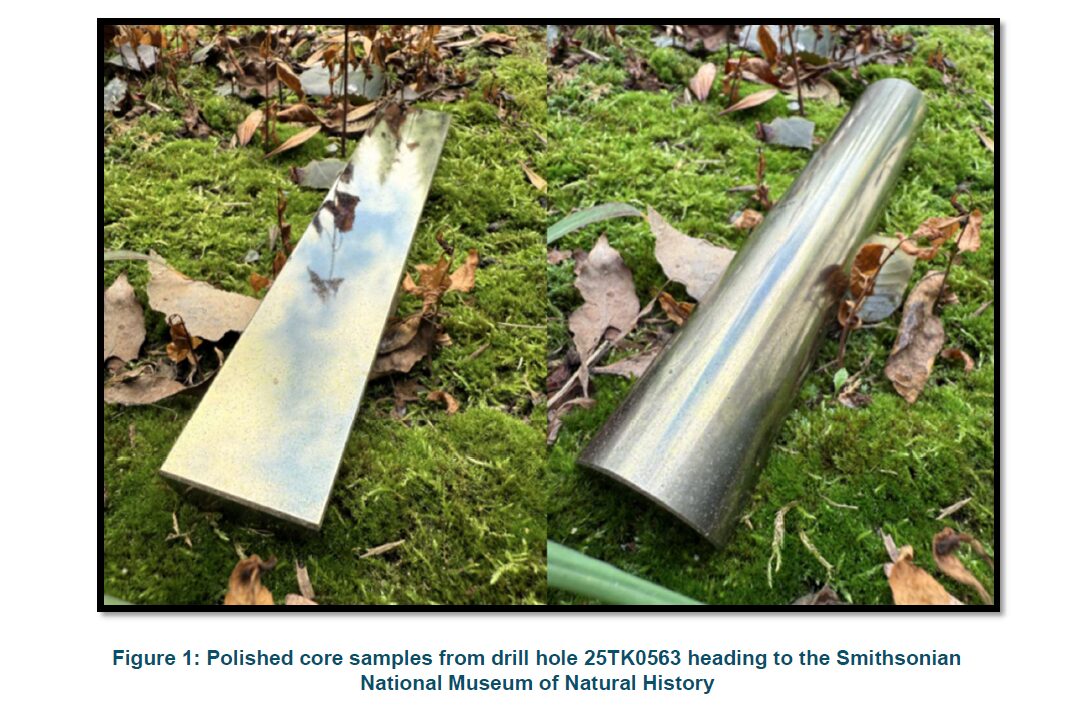 - Two 20 centimeter drill core samples taken within the interval from 796.5 meters to 798 meters in drill hole 25TK0563 grading 19.4% Ni, 13.8% Cu, 0.12% Co, 15.85 g/t Au, 31.7 g/t Pt, 13.6 g/t Pd, and 45.2 g/t Ag(40.81% NiEq or 81.30% CuEq) will be hand delivered to the Smithsonian National Museum of Natural History later this fall (see the Company’s press release from June 5, 2025 for further technical information).